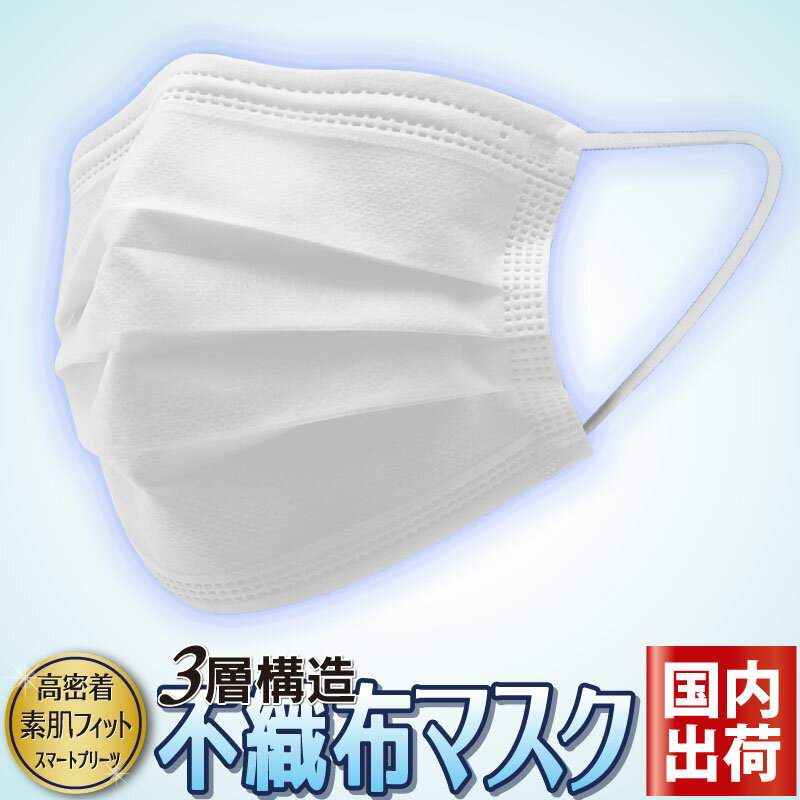 即納 マスク 在庫あり 使い捨て 3層構造 プリーツ型 不織布 マスク 白 ブルー レギュラーサイズ 10枚入り